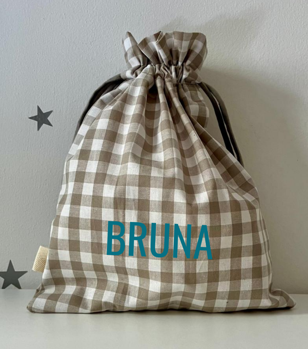 100% algodón, confeccionada a mano y personalizada en vinilo textil.